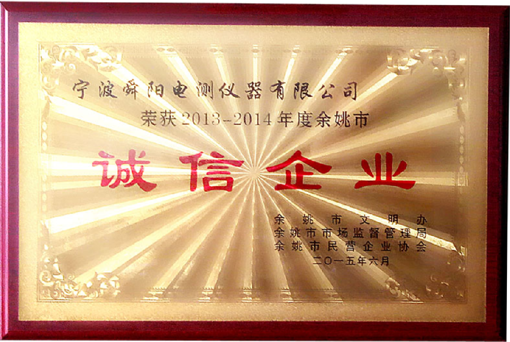2015年6月,被余姚市文明辦、余姚市市場監(jiān)督管理局、余姚市民營企業(yè)協(xié)會(huì)聯(lián)合評定為2013-2014年度余姚市“誠信企業(yè)”